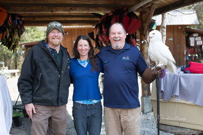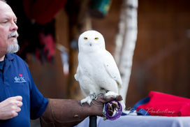 Scarlet, the Red Tail Hawk, and her certified bird presenter, Patricia. As well as Ghost, the Snowy Owl, and his certified bird presenter, Dave.